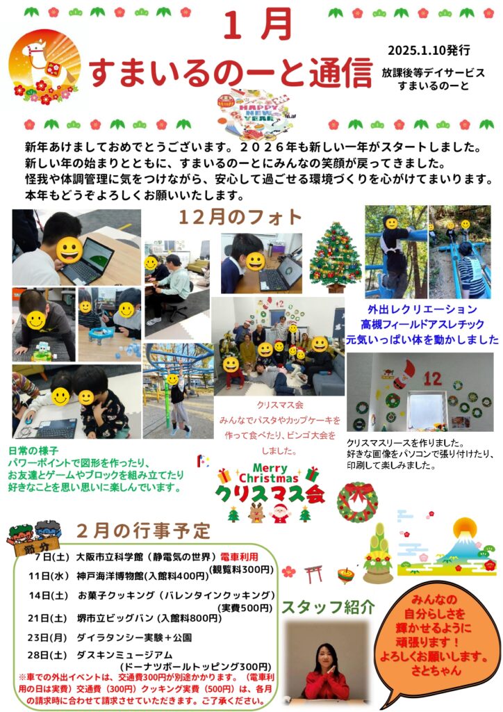 今回のすまいるのーと通信は、中学1年生のお友達もイラストを入れたりするのを協力してくれ、完成させることができました!