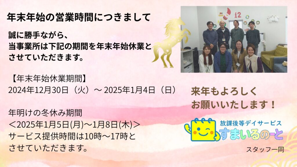 尚、年明けの冬休み期間<2025年1月5日(月)~1月8日(木)>