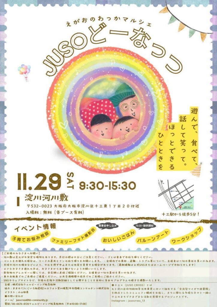 11月29日(土)に、淀川河川敷で行われる、笑顔のわっかマルシェ「JUSO どーなっつ」に出店します!