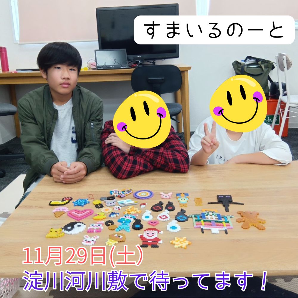 ゲームをしてくれた人には、プラ版とアイロンビーズの作品をプレゼント。